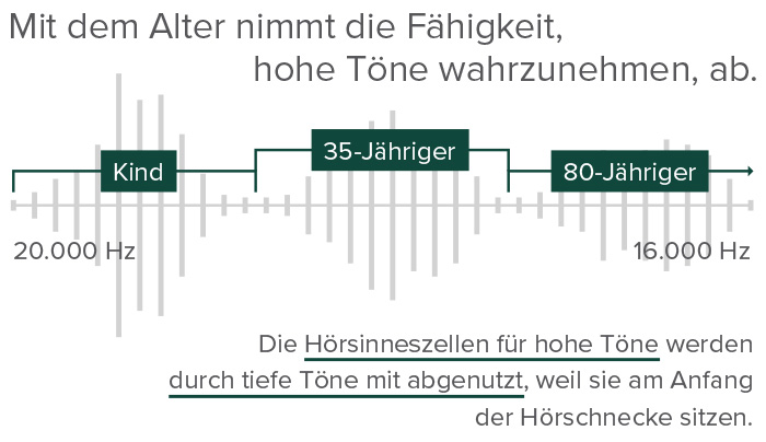 Deswegen nimmt die Fähigkeit hohe Töne zu hören im Alter ab.