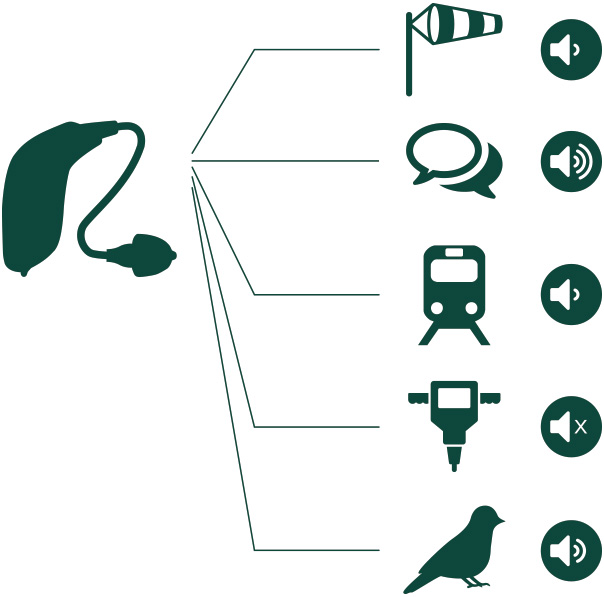 Die Hauptaufgabe von Hörgeräten ist es, Sprache wieder gut verstehbar zu machen. Das gelingt heutzutage auch mit jedem verfügbaren Modell, nachdem es von unserem Akustikteam an Ihren individuellen Hörbedarf angepasst wurde. Darüber hinaus gibt es aber noch eine Vielzahl von Algorithmen und Techniken, die Ihnen ein komfortables, angenehmes und entspanntes Hörerlebnis ermöglichen sollen. Die wichtigsten stellen wir Ihnen hier vor: