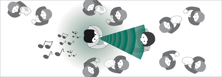 Manche Richtmikrofonsysteme sind sogar noch leistungsfähiger: Sie sind in der Lage, feste oder bewegliche Störlärmquellen zu lokalisieren und für diese dann die klassische Lärmunterdrückung zu aktivieren. So werden Maschinengeräusche, die hinter Ihnen laufen, gedämpft, und Sie können sich entspannt Ihrer Unterhaltung widmen.