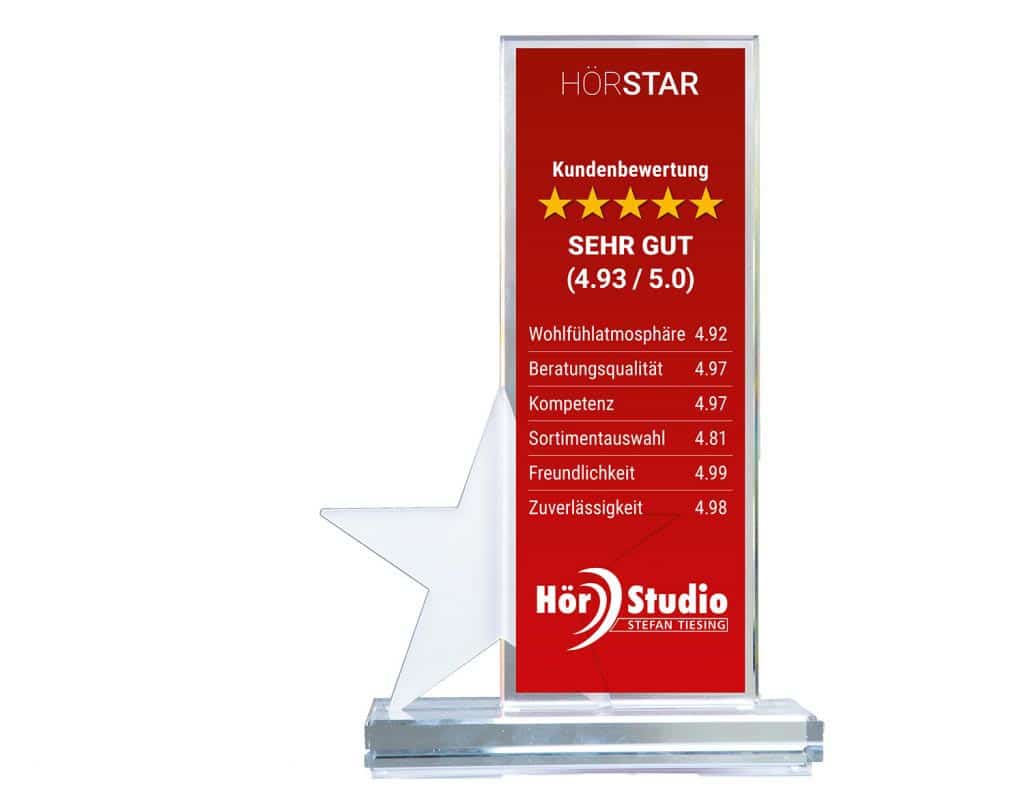 HörStar-Pokal für das HörStudio Tiesing mit Gesamtkundenbewertung sehr gut (4,93 von 5 Sternen)