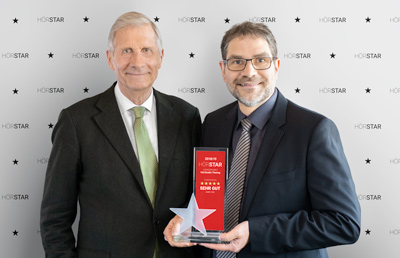 Der HörStar wird einmal im Jahr von der Arbeitsgemeinschaft Hören e.V. an dessen Mitglieder verliehen. Kriterien wie Beratungsqualität, Freundlichkeit, Kompetenz und Zuverlässigkeit können von den Kunden mit 1 bis 5 Sternen bewertet werden. Aber nur Betriebe, die mehr als 4,6 Sterne erreichen, bekommen den Premium-HörStar verliehen. Die Messlatte hängt hoch, doch darum geht es ja: Die besten der Besten herauszufinden!